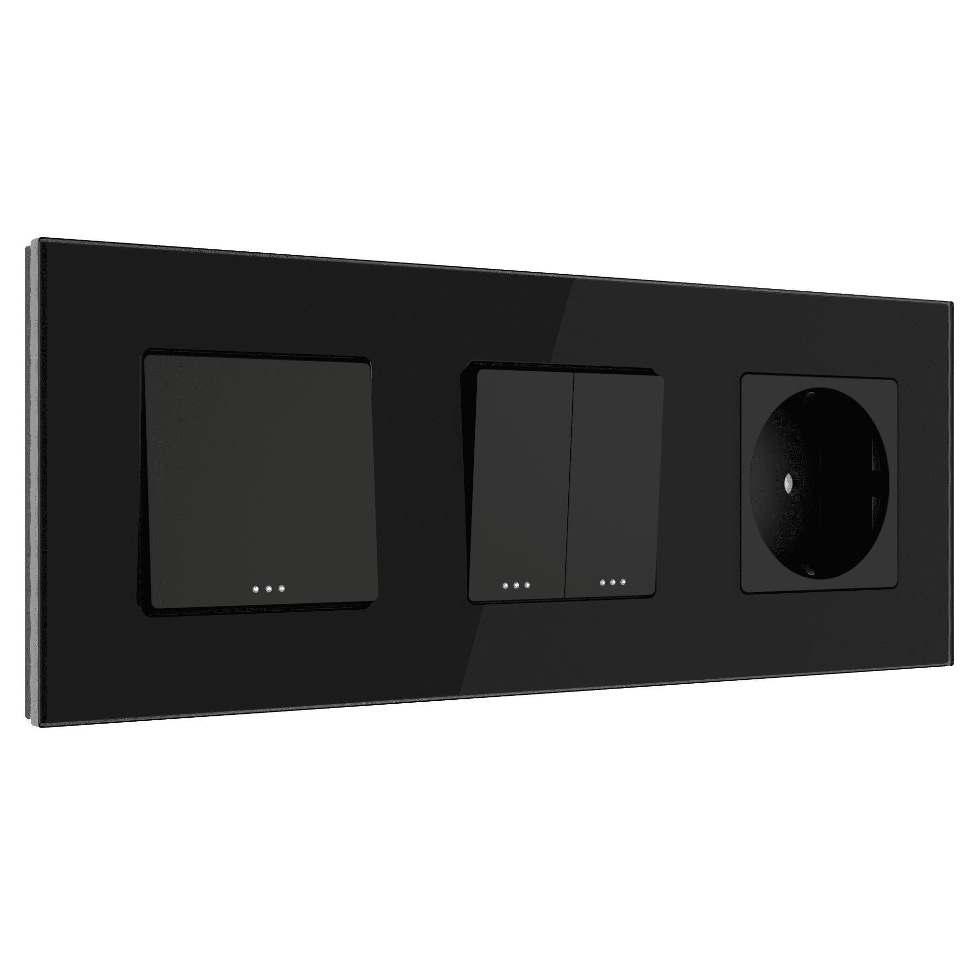 Komplett Set Ein-Aus Schalter/Serien-Wechselschalter/Steckdose im 3-Fach Glasrahmen für die DE Standard Unterputzdose 60mm.