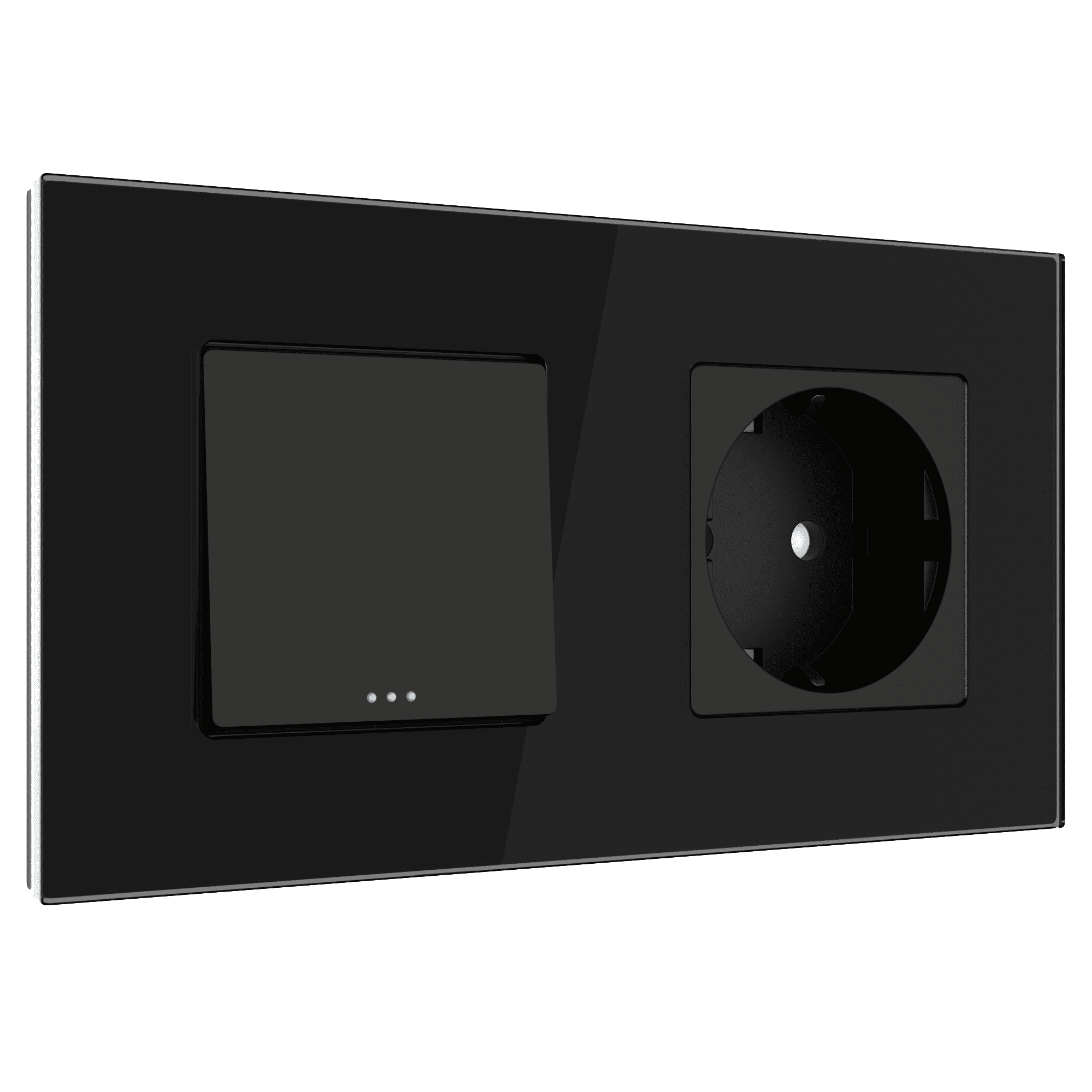 Kreuzschalter/Steckdose Unterputz 2-Fach Glas