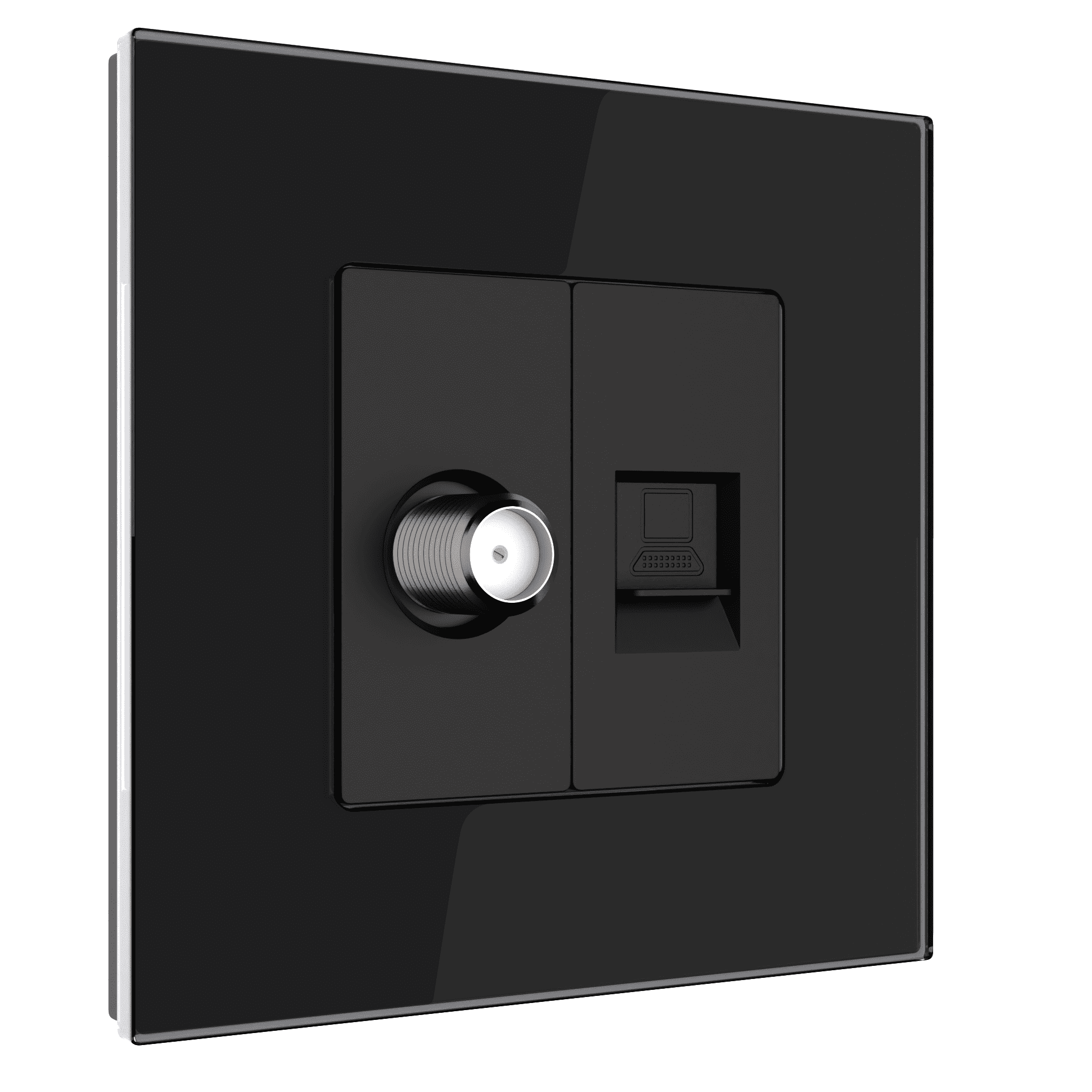 Komplett Set SAT Anschlußdose und Internet Dose RJ45 Port/8P8C Buchse aus Glas ist eine stilvolle, moderne und praktische Lösung, die zu jeder Inneneinrichtung passt.