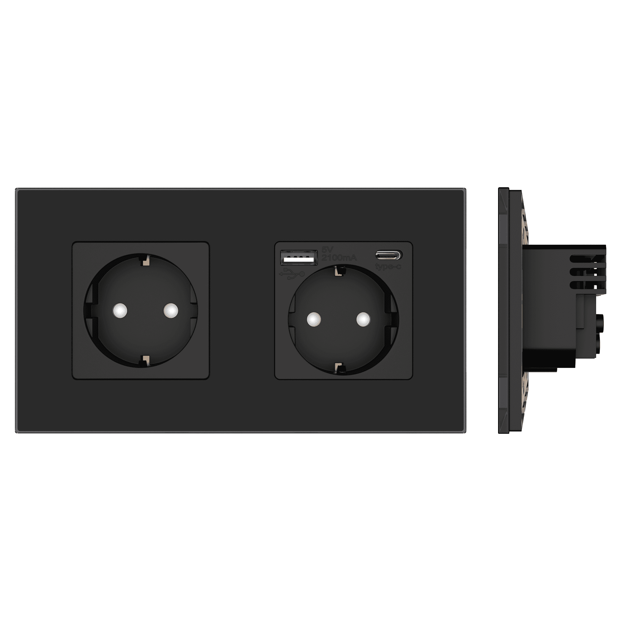 Steckdose mit USB A + USB C 2-Fach mit Glasrahmen