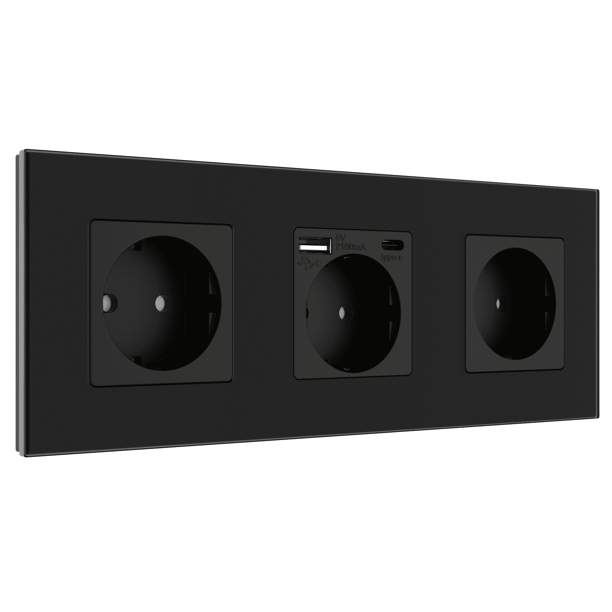 Steckdose mit USB A + USB C 3-Fach mit Glasrahmen
