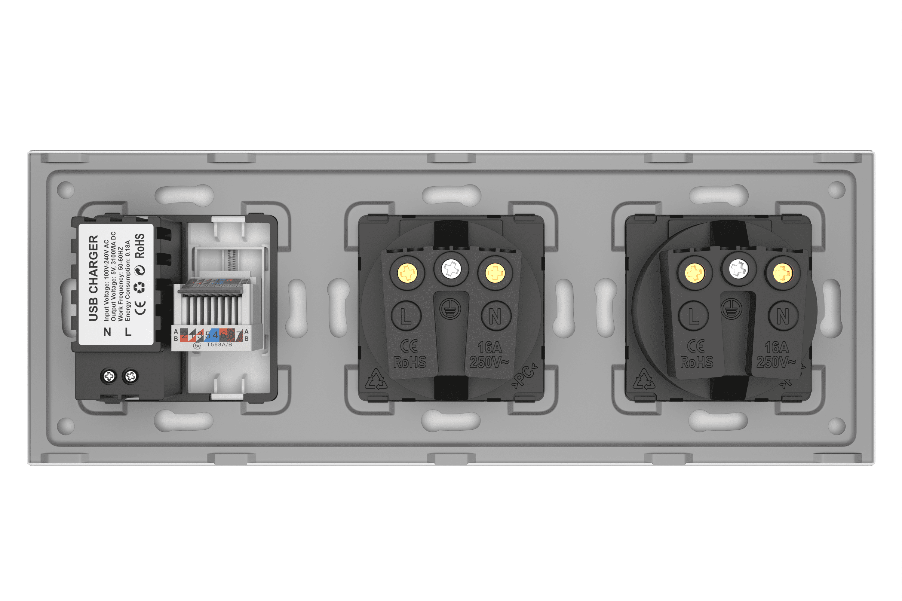 Design – Komplett Set Steckdose/Netzwerkdose/USB-Steckdose ist eine Kombination aus Ästhetik, Funktionalität und Sicherheit. Sein elegantes Design macht ihn zu einer attraktiven Lösung für jedes Interieur.